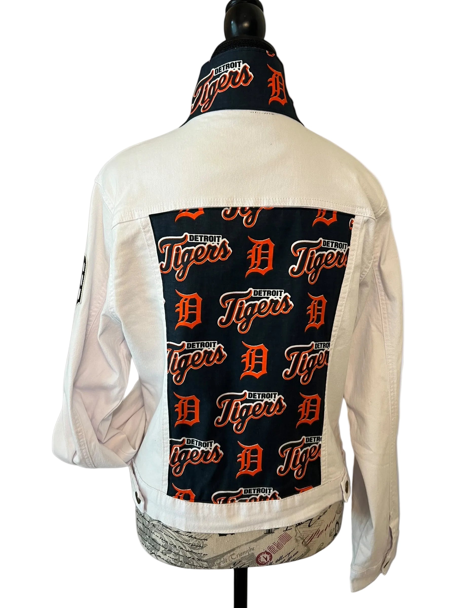 White Stretch Denim | Baseball-Inspired Accents | Handmade Statement Layer